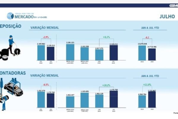 As vendas totais de pneus registraram queda de 0,8% nos sete primeiros meses de 2025 em comparação com o mesmo período do ano anterior…
