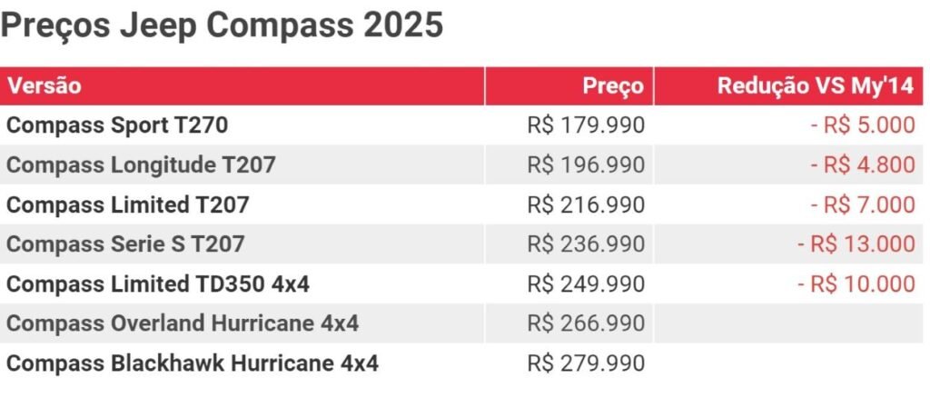 Tanto que a versão 2025 do Jeep Compass Sport, esse um concorrente diretíssimo do Tiggo 7 Sport, teve redução de R$ 5 mil no seu preço de estreia na comparação com a linha anterior: custa, portanto, R$ 179.990.