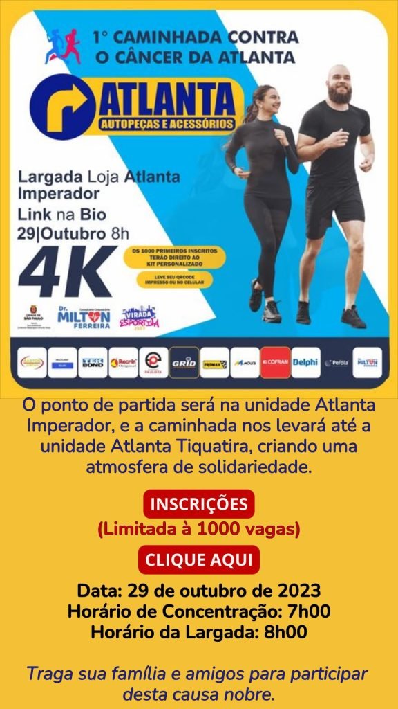 A Caminhada Atlanta contra o câncer é um evento que foi criado para conscientizar a população e chamar atenção para esse tema que é importante e pode salvar vidas.