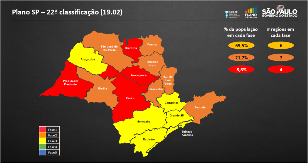 Em entrevista coletiva realizada no início da tarde desta sexta-feira, 19 de fevereiro de 2021, o governo do Estado de São Paulo promoveu a 22ª atualização do Plano São Paulo