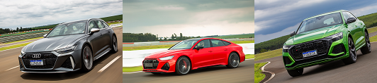 Os três veículos chegam com o potente motor 4.0 TFSI, que entrega 600 cv de potência, 800 Nm de torque e acelera de zero a 100 km/h em 3,6 segundos nos RS 6 Avant e RS 7 Sportback e em 3,8 segundos no RS Q8. A potência do propulsor flui para o sistema de tração integral permanente quattro por meio do câmbio tiptronic de oito velocidades. Configurado como uma engrenagem planetária, o diferencial central distribui a força motriz em uma proporção de 40:60 para os eixos dianteiro e traseiro. Se necessário, automaticamente mais torque é direcionado ao eixo com melhor tração. Até 70% pode fluir para as rodas dianteiras e até 85% para as rodas traseiras.