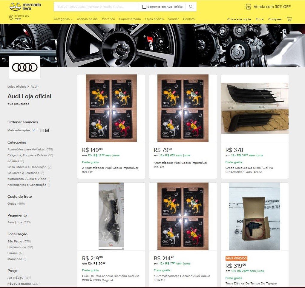 Link para loja virtual: https://loja.mercadolivre.com.br/audi