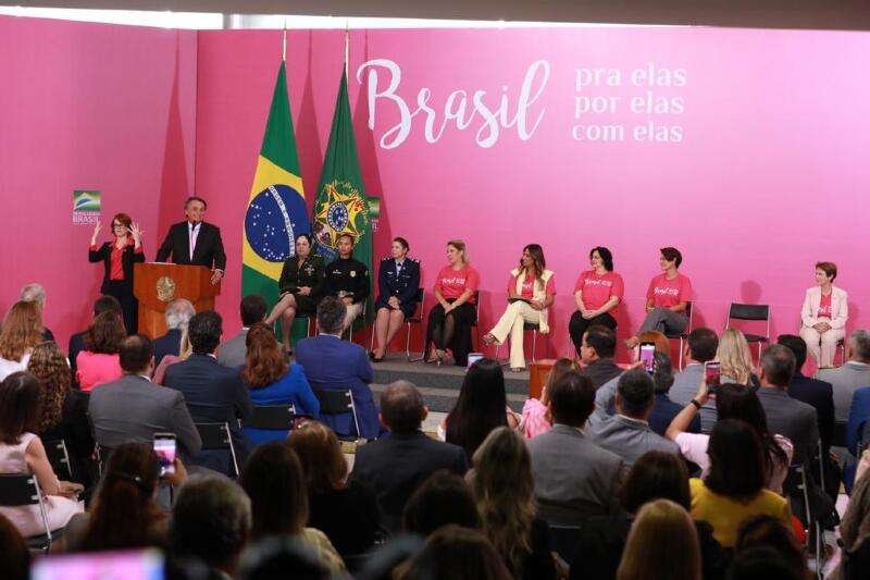 A ministra da Mulher, Família e Direitos Humanos, Damares Alves, reforçou todos os projetos de lei aprovados por Bolsonaro em defesa da mulher. “É um governo cor de rosa. Foram mais de 30 leis para proteção, promoção e defesa das mulheres. Entregamos o plano nacional de enfrentamento ao feminicídio, que combate as violências sofridas por mulheres, entre outras ações”, pontuou. Conheça o portal Brasil Pra Elas aqui.