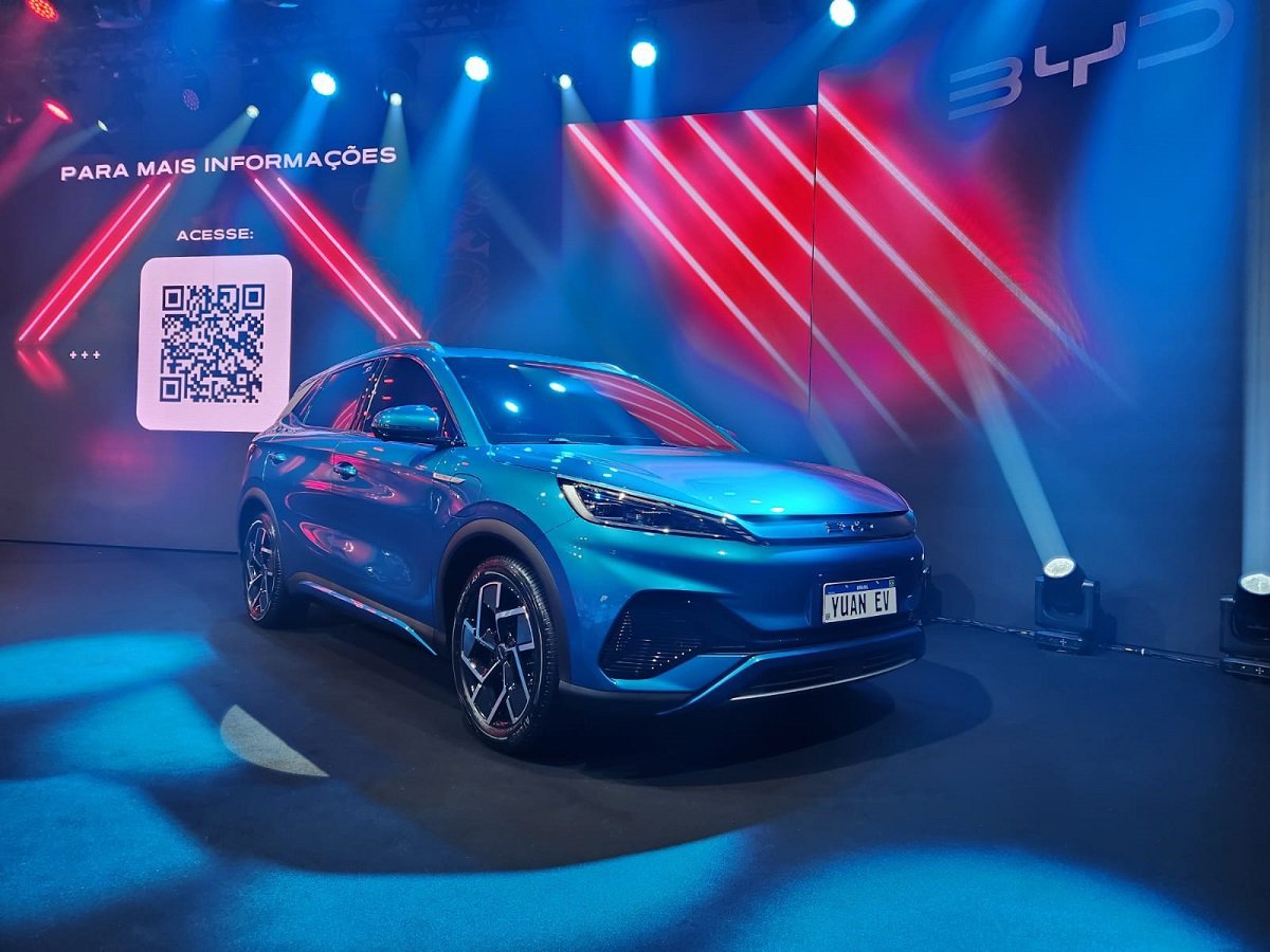 Mas quem roubou a festa mesmo na apresentação do primeiro híbrido da BYD no país foi o Yuan Plus. O SUV nada mais é que a versão totalmente elétrica do Song Plus. Usa motor de 204 cv e 31,6 kgfm e promete 0-100 km/h em 7,3 segundos.