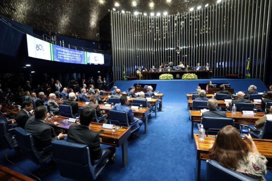 A Confederação Nacional do Comércio de Bens, Serviços e Turismo (CNC) comemorou seus 80 anos em Sessão Solene no Congresso Nacional, realizada na quarta-feira (26), por requerimento do senador Efraim de Araujo Morais Filho (União-PB), e conduzida pelo senador Izalci Lucas (PL-DF). A solenidade reuniu diretores e colaboradores da CNC, parlamentares, autoridades, presidentes das Federações do Comércio e convidados, marcando um momento histórico para a entidade que representa um dos setores mais relevantes da economia brasileira.