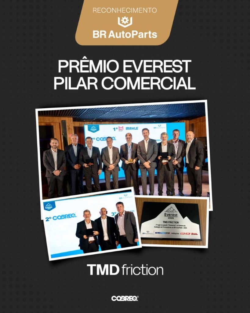 A premiação foi recebida por representantes da TMD Friction, grupo ao qual a Cobreq pertence. Estiveram presentes na cerimônia Edilson Jaquetto, Vice-Presidente Américas e Fabio Merighi, Diretor de Vendas e Marketing. “Este reconhecimento destaca o reflexo de uma estratégia alinhada à excelência e à evolução contínua no relacionamento com clientes e parceiros. Agradecemos a BR Autoparts pela oportunidade e pela continuidade de nossa parceria”, declara Jaquetto.