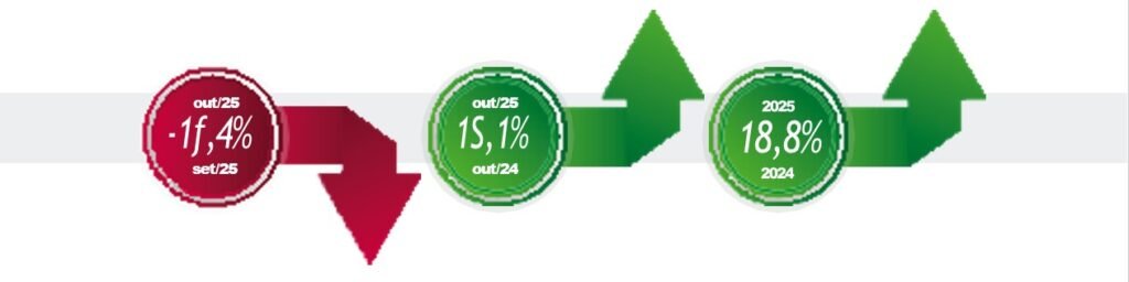 Este foi o único segmento a apresentar alta nominal frente ao resultado de outubro. “O resultado mostra que projetos de renovação de frota urbana, escolar e rodoviária continuam em andamento, impulsionados por licitações e programas públicos. É um segmento que responde às políticas de mobilidade e de transporte coletivo”, destaca Arcelio Junior.