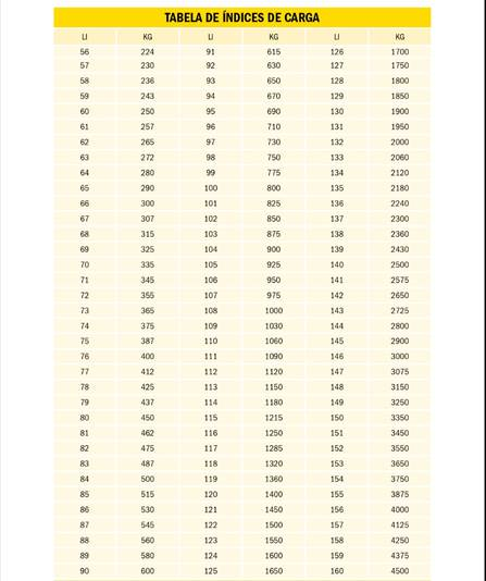 Por exemplo, o índice 88 corresponde a 560 kg.