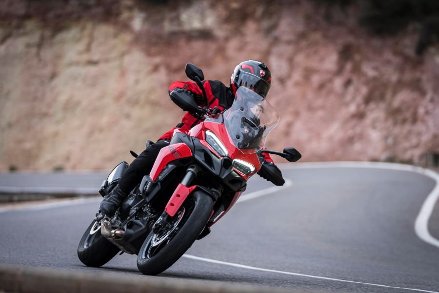 Além disso, a função Pré-Carga Mínima permite que a suspensão traseira seja rebaixada ao mínimo com o simples toque de um botão, facilitando o contato dos pés com o solo, especialmente quando totalmente carregado e com um passageiro. Assim como na nova Multistrada V4, os modos de suspensão podem ser selecionados independentemente dos modos de condução, para escolher a calibração de suspensão preferida, mantendo os parâmetros de controle eletrônico e a resposta do motor inalterados.