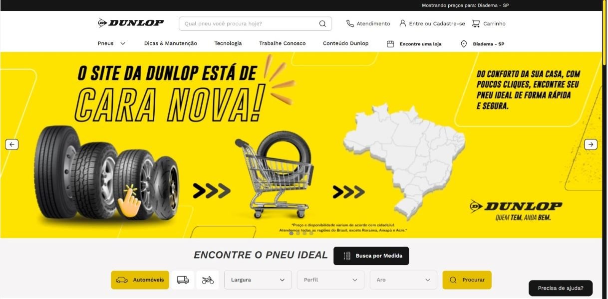 - Buscador Avançado e Localizador de PDVs: Pensando na praticidade, o site incorpora um buscador altamente eficaz que permite aos usuários localizar pneus pela medida exata (largura, perfil, aro), garantindo a precisão na escolha. Adicionalmente, o localizador de pontos de venda da Dunlop próximos ao usuário foi aprimorado.