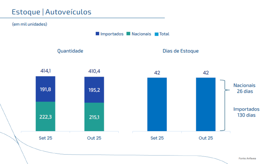 O crescimento da concorrência e oferta de produtos importados também não de hoje é relacionado por Calvet como preocupante para a produção brasileira. Enquanto os estoques dos veículos nacionais ficam na casa de um mês, o volume de veículos trazidos de fora é suficiente para algo acima de quatro meses.