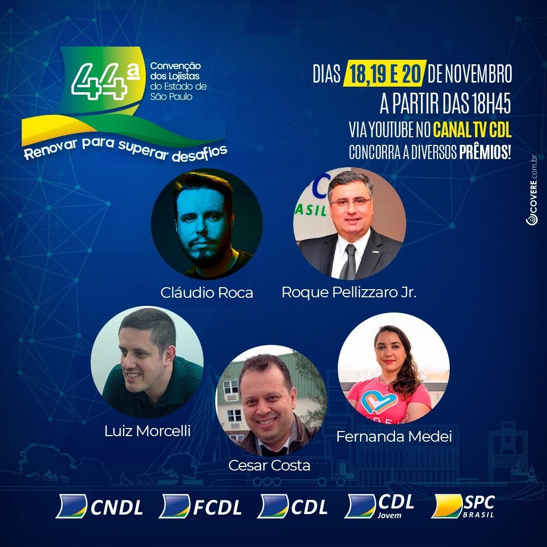 A FCDLESP (Federação das Câmaras de Dirigentes Lojistas do Estado de São Paulo) promove entre os dias 18 e 20 de novembro, a 44ª Convenção dos Lojistas do Estado de São Paulo. Neste ano, o evento será 100% online e irá abordar o tema “A retomada do crescimento”, que visa debater o atual cenário do varejo e apontar as maneiras de superar os desafios, mesmo na crise provocada pela pandemia de Covid-19.