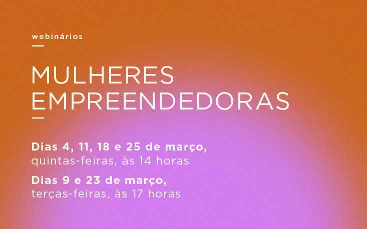 No mês em que se comemora o Dia da Mulher, a FecomercioSP preparou uma programação especial para os seus webinários semanais, com o objetivo de mostrar ao público histórias inspiradoras de mulheres que fazem a diferença no empreendedorismo, que são exemplos de persistência, coragem, sucesso, mudança e inovação. As lives serão realizadas todas as quintas, às 14h (04, 11, 18, 25 de março) e em duas terças, às 17h, (09 e 23 de março), estas duas últimas dedicadas especialmente ao setor de turismo. As transmissões serão feitas nas páginas do YouTube e do Facebook da Federação.