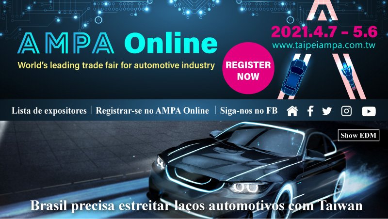 As exposições da série AMPA – “Taipei AMPA” e “Autotronics Taipei” – estrearão este ano na forma de exibições físicas e online. A exibição física será de 14 a 17 de abril e será realizada no Nangang Exhibition Hall 1 no mesmo dia. A exposição online será lançada antecipadamente de 7 de abril a 6 de maio e terá a duração de um mês, permitindo que a indústria automotiva global supere as restrições de tempo e espaço, participe de eventos anuais e promova oportunidades de negócios.