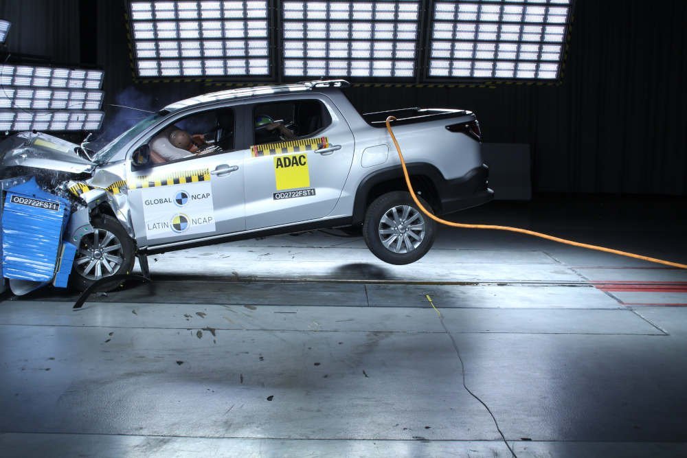 Fiat Strada durante o teste de colisão na avaliação de segurança feita pelo Latin NCAP