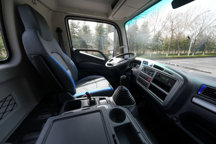 O caminhão traz, por exemplo, comandos multifuncionais no volante, ar-condicionado automático, painel de instrumentos com tela colorida multifuncional de 7 polegadas, sistema de controle de cruzeiro e conectividade via Bluetooth que permite chamadas em viva-voz e streaming de áudio.