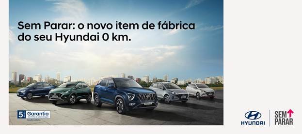 O Sem Parar, empresa do Grupo Fleetcor e líder nos meios de pagamentos automáticos do País, e a Hyundai Motor Brasil anunciam parceria que traz novas vantagens aos compradores de veículos 0km. A partir deste mês, os modelos HB20 e Creta sairão de fábrica com a tag do Sem Parar instalada, possibilitando o pagamento contactless em pedágios, drive-thrus, estacionamentos, postos de abastecimento e lava-rápidos.