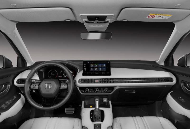 O desenho curvilíneo do exclusivo console central flutuante do ZR-V abriga a alavanca de câmbio e o botão do freio de estacionamento de maneira ideal para facilitar o uso. O volante multifuncional regulável em profundidade e altura é revestido em couro macio e oferece uma agradável sensação ao motorista, sendo dotado de controles de áudio, telefone e de configuração do veículo no raio esquerdo e do controle de cruzeiro e o seletor de informações do carro no raio direito. O volante ainda conta com paddle-shifts para troca de marchas.