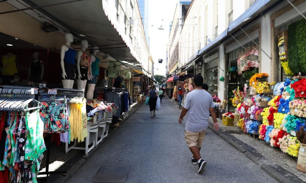Comércio na SAARA (Sociedade de Amigos das Adjacências da Rua da Alfândega), centro da cidade. Comércio não essencial está autorizado a reabrir a partir de hoje (9) na cidade do Rio de Janeiro depois de duas semanas fechados devido à pandemia de Covid-19.