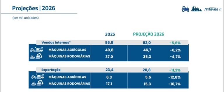 A aceleração das importações de máquinas agrícolas e rodoviárias da China e da Índia preocupa os fabricantes locais, que têm reduzido vendas nos últimos anos e devem seguir com desempenho negativo em 2026, conforme projeções divulgadas pela Anfavea nesta quarta-feira, 15.