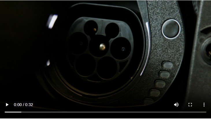 O vídeo de 33 segundos começa com o plug para carregamento da bateria. O quadro de instrumentos full digital é mostrado inicialmente com uma tela com a informação de que o veículo está recebendo energia, em qual percentual está no momento e qual tempo falta para que o carregamento termine. A seguir, entra outra tela mostrando qual modo está ativado no momento (híbrido nesse caso).