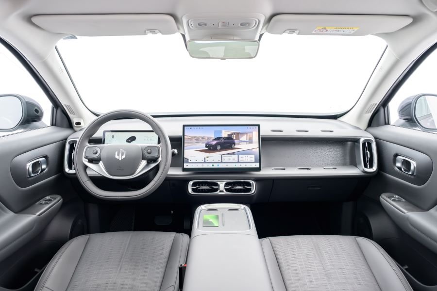 Para acessar o interior, o cliente pode utilizar seu próprio smartphone com chave digital integrada através do aplicativo Leapmotor. Neste caso, não é necessário retirar o aparelho do bolso, já que o veículo detecta a proximidade do proprietário e destrava as portas automaticamente. Ao ocupar o assento do motorista, basta digitar a senha numérica e personalizável na central multimídia do modelo ou aproximar o cartão NFC no espaço dedicado no console central para então colocá-lo em movimento.