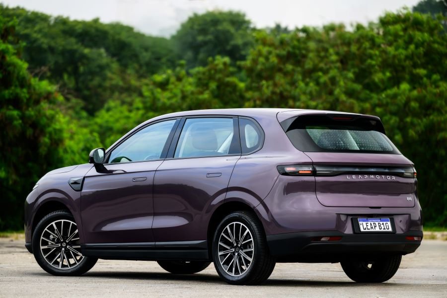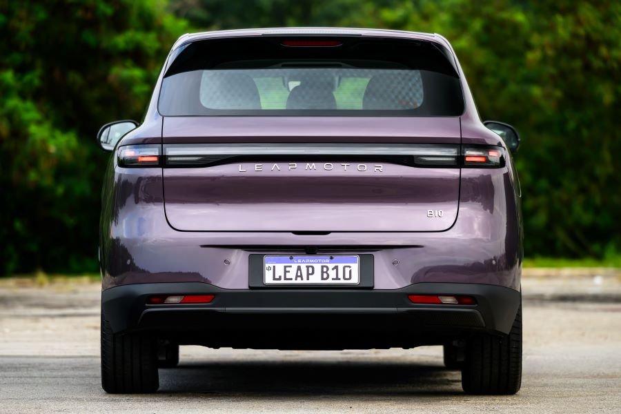 Na traseira, o modelo segue a identidade inaugurada pelo C10, com lanternas integradas e bipartidas, também em led e que completam o visual minimalista e de linhas fluidas do segundo SUV da Leapmotor no Brasil.