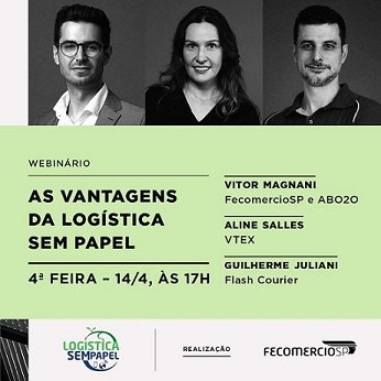 Debate faz parte do projeto Logística Sem Papel e terá as presenças de Vitor Magnani, do Conselho de Comércio Eletrônico da FecomercioSP, Aline Salles, da VTEX, e Guilherme Juliani, da Flash Courier