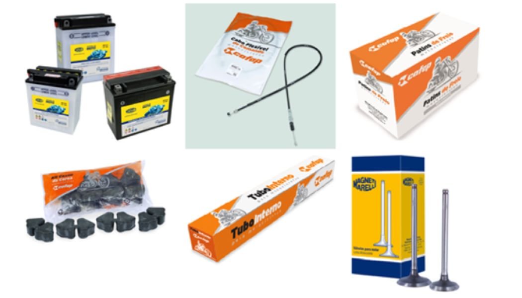 Já o catálogo da marca Magneti Marelli reúne uma ampla variedade de componentes, incluindo baterias, bombas de combustível, bobinas de ignição, velas de ignição, reguladores e retificadores, relés, suportes e escovas, sensores de temperatura, lâmpadas e filtros, além das famílias da linha motor: kits de motor completos, pistões com anéis, bielas e válvulas.