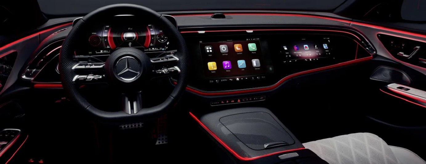 Músicas, jogos e conteúdo de streaming poderão ser experimentados com quase todos os sentidos. Graças às inovações digitais no interior, o novo Classe E será mais inteligente, alcançando uma nova dimensão de personalização e interação. Ao mesmo tempo, a arquitetura eletrônica será mais orientada por software e menos por hardware. Isso forma a base para uma atualização mais individual dos sistemas internos no futuro.