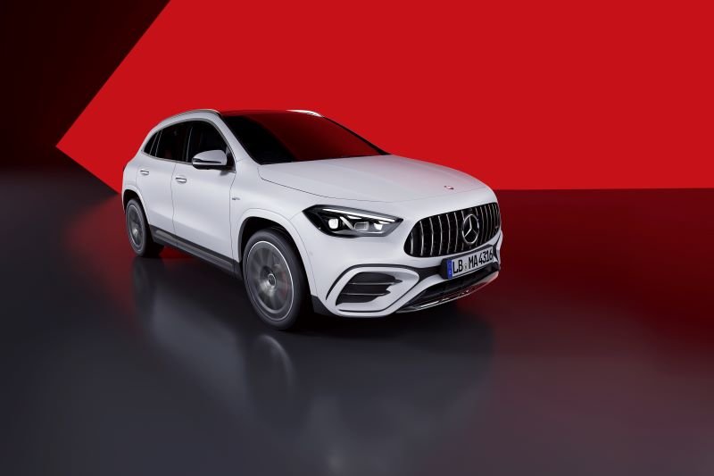 Externa e internamente, as versões AMG GLA 35 e AMG GLB 35 também receberam novos para-choques, capôs e rodas AMG de 21 polegadas. O novo volante multifuncional AMG Performance com design de raios duplos traz como diferencial as teclas AMG com displays brilhantes e lógica de operação intuitiva. Eles permitem controlar todos os programas de condução sem tirar as mãos do volante.