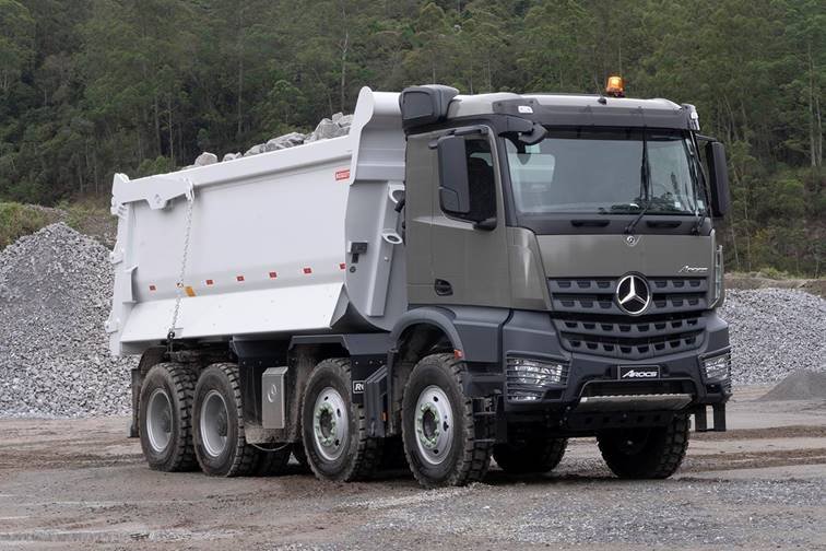 Arocs 8×4 pode receber básculas de 20 a 24 metros cúbicos