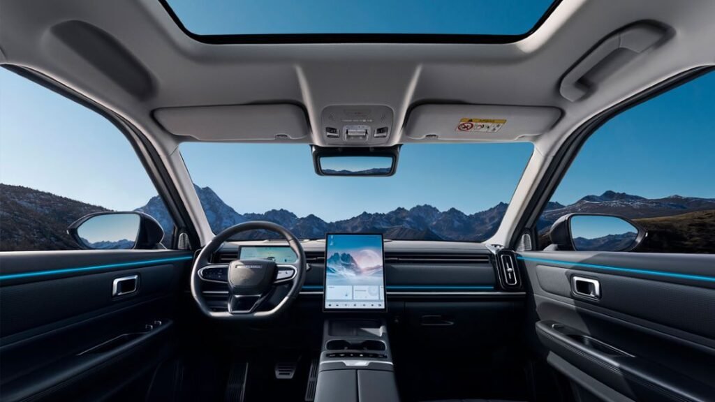 Outro elemento fundamental é a bateria de alta densidade energética, projetada para oferecer maior capacidade de armazenamento com dimensões compactas. Esse conjunto possibilita ao Jaecoo 7 rodar dezenas de quilômetros apenas com energia elétrica, antes mesmo da atuação do motor a combustão.