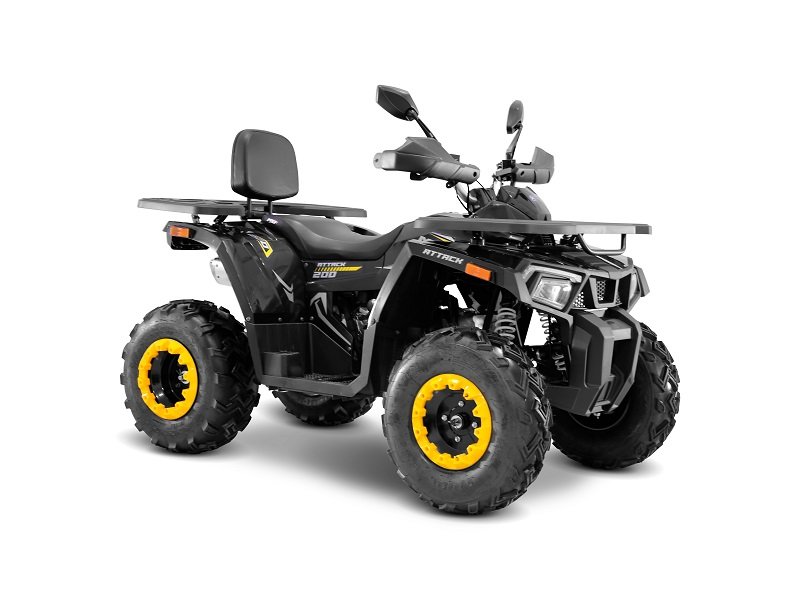 Os freios são hidráulicos e a disco, acionados na mão, como nas motocicletas, o que traz maior controle e segurança ao condutor. Para quem deseja utilizar o Attack 200cc para serviços rurais, os bagageiros com cobertura em plásticos ABS têm maior durabilidade e capacidade de carga de 150 quilos, possibilitando carregar equipamentos para o manejo diário.