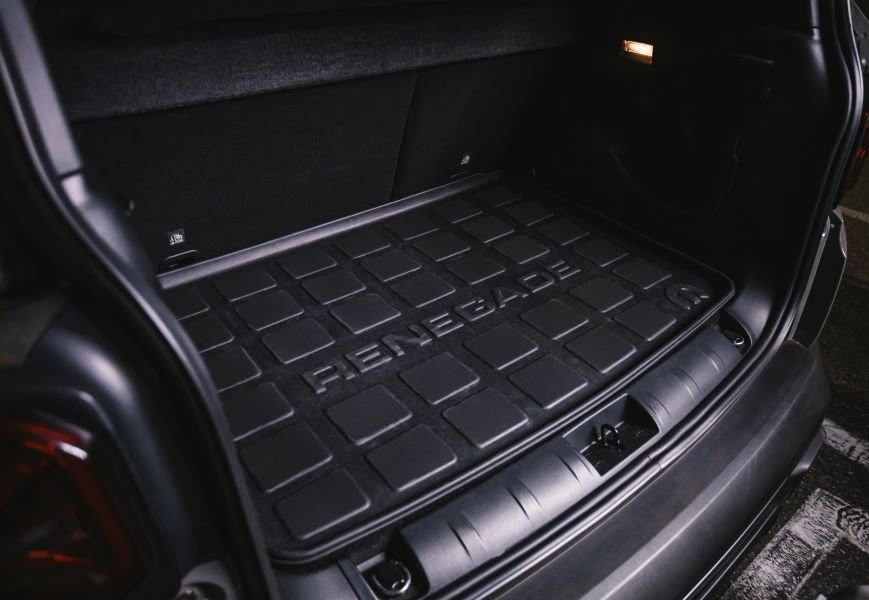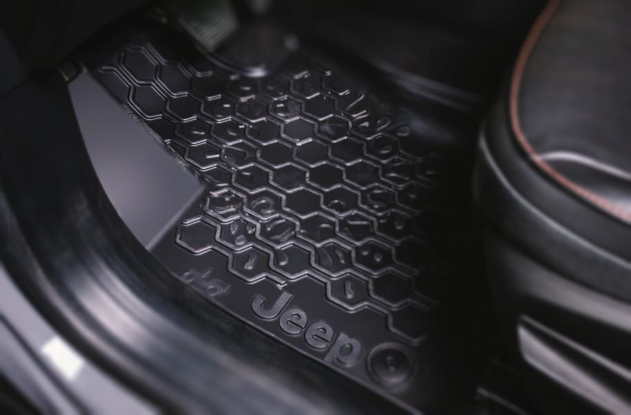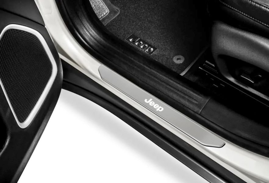 Ainda no visual externo aumentam a versatilidade do modelo, estribos laterais, engate reboque integrado, suporte para 2 bikes no engate, além de para-barros Mopar para segurar a lama que só o espírito Jeep vai garantir. Internamente o novo interior recebeu conjunto de tapetes de bordas elevadas para assoalho e porta-malas e ao abrir as portas o projetor de logo Jeep.