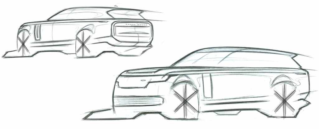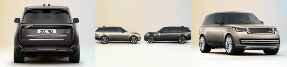 O Novo Range Rover leva a filosofia de design reducionista da Land Rover a um próximo nível, com uma interpretação contemporânea de seu perfil de marca, para criar um estilo marcante, moderno e atemporal. Ele une em sua essência modernidade, estética limpa e fluida e o mais alto grau de sofisticação apresentado pela marca em todos os tempos. Ele é facilmente caracterizado por três linhas, que podem traçar suas origens através das gerações. A frente é confiante, aprimorada por seu gráfico de grade mais profundo e faróis interseccionais. O design do farol de LED Digital tem uma qualidade semelhante a uma joia pois a luz reflete e refrata as luzes diurnas. Os faróis de neblina dianteiros, radares dianteiros e sensores de estacionamento estão todos escondidos dentro da abertura inferior, que é descrita por um gráfico horizontal claro no cromo de cetim, para uma aparência limpa e elegante.