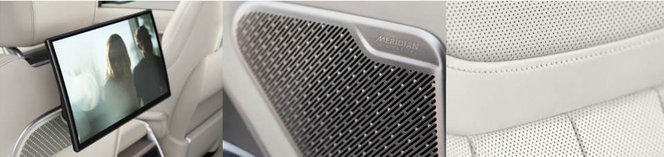 O sistema de som Meridian Signature de 1.600 W é o responsável por criar um dos interiores de veículos mais silenciosos, com alto-falantes adicionais de 20 W nos quatro principais apoios de cabeça para uma experiência sonora mais imersiva (opcional).