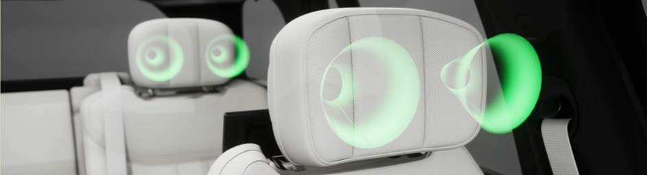 A nova geração do Range Rover inclui ainda um par de alto-falantes de 60 mm de diâmetro nos encostos de cabeça para cada um dos quatro ocupantes principais da cabine, que criam zonas de silêncio pessoais semelhantes ao efeito de fazer uso de fones de ouvido high-end.