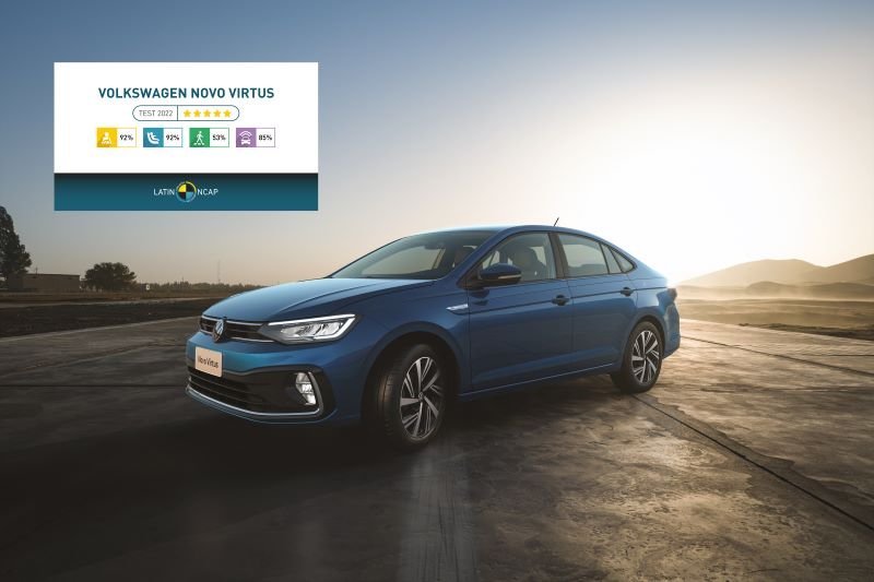 Terceiro da família VW! O Novo Virtus acaba de obter a nota máxima em segurança no novo protocolo de testes do Latin NCAP (2020-2024), que avalia o nível de segurança dos modelos vendidos na América Latina e Caribe. Com os resultados do sedã, a Volkswagen se torna a única marca do Brasil com três modelos cinco estrelas: Novo Virtus, Nivus e Taos.
