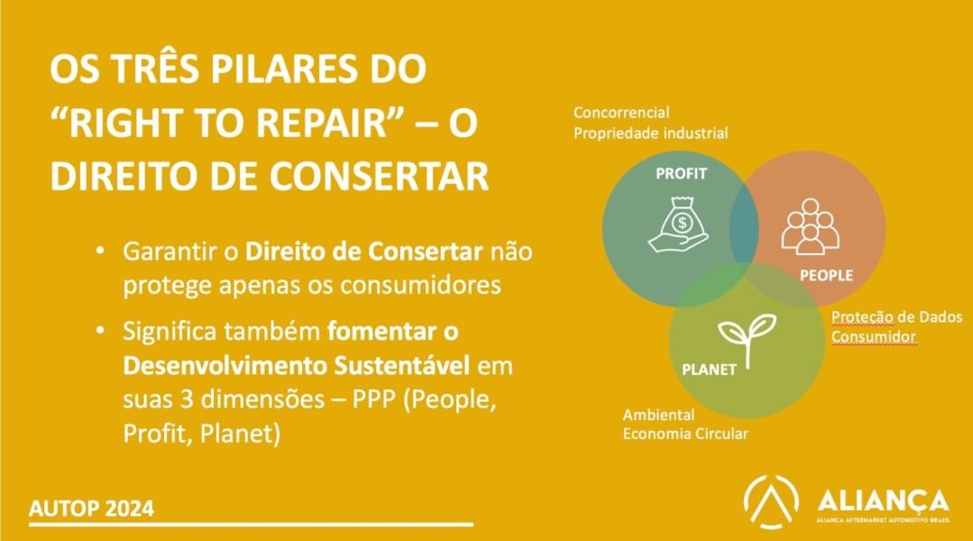 Por fim, Renato Fonseca apresentou soluções para fortalecer o Direito de Reparar no Brasil, incluindo a disponibilização de informações e peças para toda a cadeia de reparação, a conscientização da população sobre seus direitos e a consolidação de alianças entre os diferentes setores do aftermarket. Ele concluiu sua apresentação afirmando que o fortalecimento do Direito de Reparar é fundamental para garantir um aftermarket mais respeitado e valorizado, além de contribuir para a sustentabilidade econômica e ambiental no Brasil.
