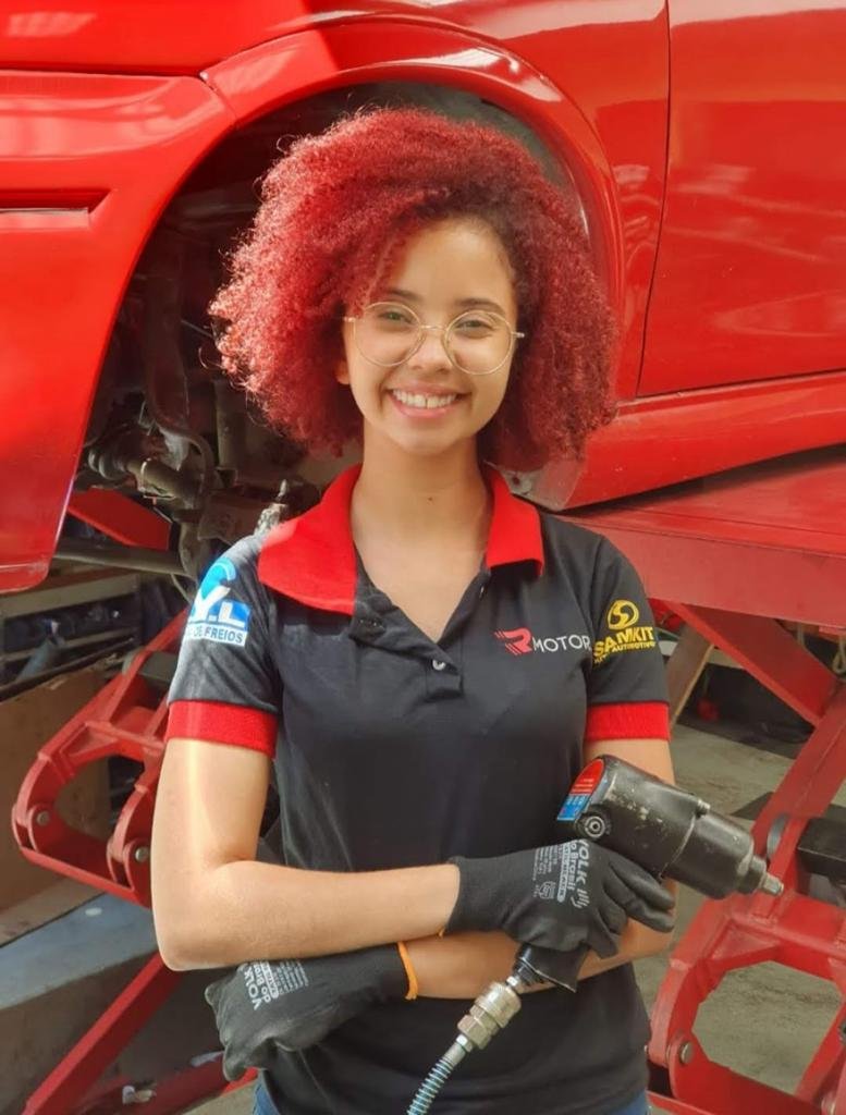 Hoje, proprietária, recorda os desafios enfrentados no início da sua trajetória e como superou o preconceito por ser uma jovem mulher mecânica à frente de uma oficina. “O preconceito é muito grande e foi um pouco complicado lidar com comentários negativos, piadas, brincadeiras de mal gosto e dúvidas sobre minha capacidade. Mas toda essa situação foi algo que eu aprendi a lidar com o tempo, no começo eu achava que deveria debater, depois entendi que apenas minhas atitudes, minha postura mostrariam meu profissionalismo”