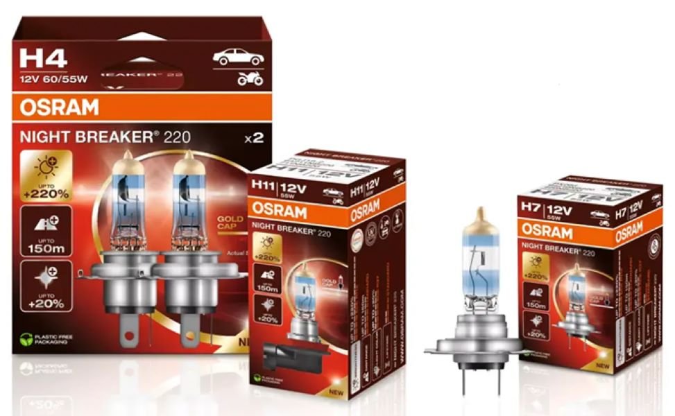 Líder mundial em iluminação automotiva, a OSRAM traz ao mercado brasileiro mais uma lâmpada da sua consagrada linha NIGHT BREAKER: a NIGHT BREAKER 220, considerada a halógena mais poderosa do mercado. Capaz de entregar 220% mais brilho e 20% mais luz branca que o padrão exigido, o produto é indicado para automóveis e motos de alta cilindrada.
