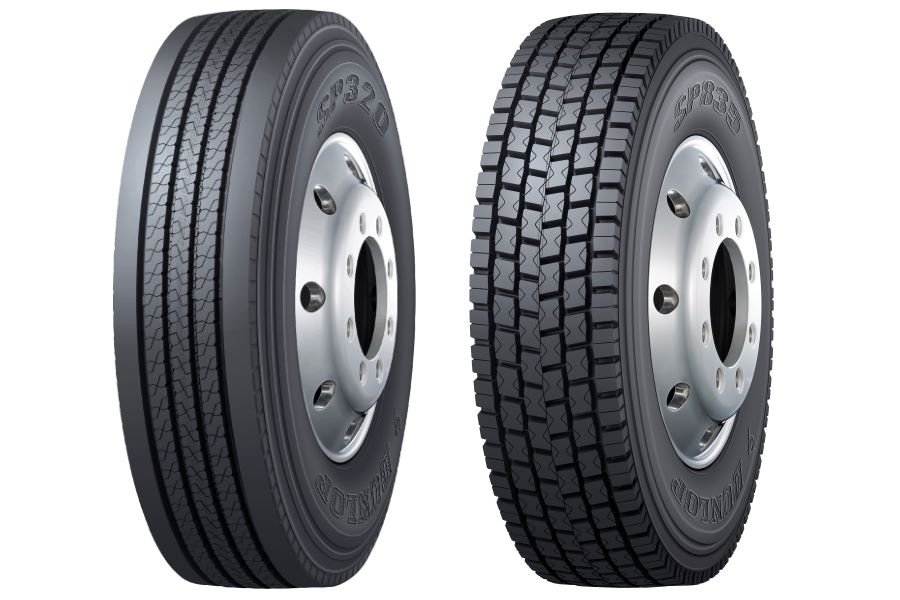 O SP320 é um pneu direcional que possui uma camada dupla na banda de rodagem, que reduz a geração de calor e, consequentemente, o consumo de combustível. Já o SP835B é um pneu de tração que conta com um talão reforçado e sulco de ejetor de pedras, que reduzem a retenção de pedras preservando a carcaça.
