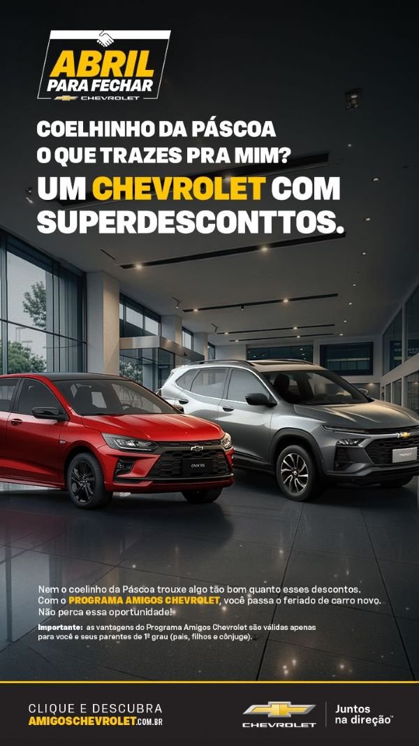 Isso significa bônus extra direto na concessionária para a compra do seu Chevrolet 0km, além das ofertas já disponíveis no programa.