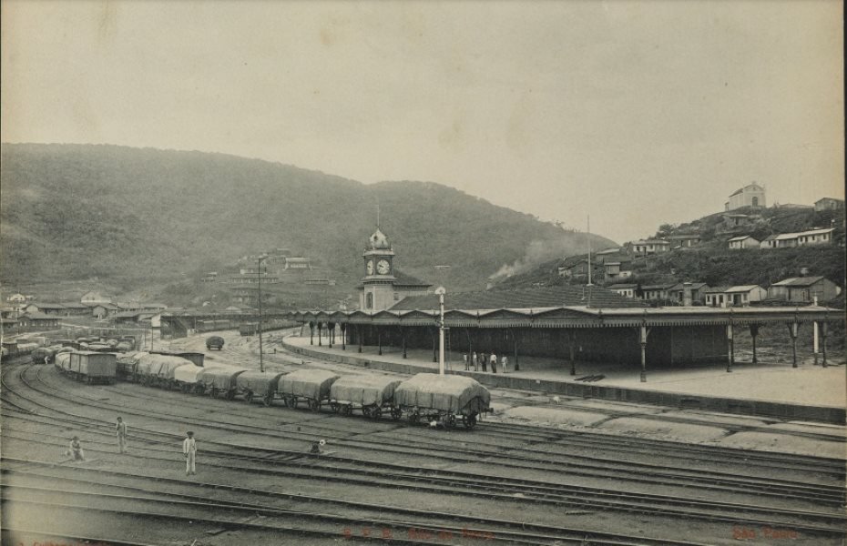 Estação Alto da Serra (Paranapiacaba), primeira Ferrovia Paulista da São Paulo Railway, fotografada por Guilherme Gaensly (Colotipia, cerca de 1902). Em 16 de fevereiro de 1867 entrou em operação a estrada de ferro São Paulo Railway, a primeira ferrovia paulista, concebida para ligar a cidade de Santos à vila de Jundiaí e, por conseguinte, aos distritos da província de São Paulo onde a cultura do café expandia-se de forma promissora. O empreendimento foi idealizado por Irineu Evangelista de Souza, o Barão de Mauá, José da Costa Carvalho, o Marquês de Monte Alegre, e o Conselheiro José Antonio Pimenta Bueno. Um decreto imperial de 1856 autorizou-os a constituírem uma companhia encarregada da construção, custeio e gozo de uma estrada de ferro que partisse de Santos e chegasse a Jundiaí, passando pela capital São Paulo.