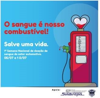 O Sindirepa-SP, Sindicato da Indústria de Reparação de Veículos e Acessórios do Estado de São Paulo, é um dos apoiadores da campanha “Sangue é o Nosso Combustível”, que acontecerá de 5 a 10 de julho em todo o País. A ação, que é uma iniciativa do GOE – Grupo das Oficinas Especializadas e tem o apoio de todas as oficinas que fazem parte do grupo.