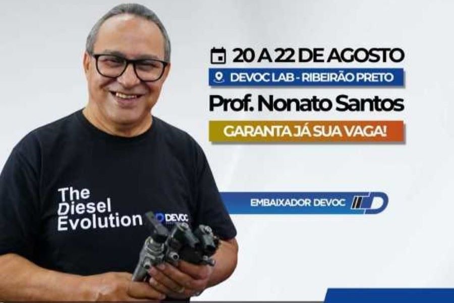 Treinamento, que acontecerá, de 20 a 22 de agosto, de forma presencial, na Devoc Lab, em Ribeirão Preto-SP, será realizado pelo professor e especialista com mais de 40 anos de experiência em injeção de combustível em motores diesel, Nonato Santos, que também é embaixador da marca