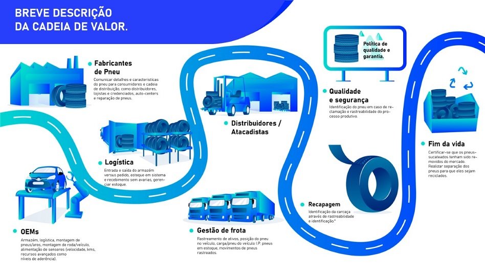 O RFID é uma tecnologia de comunicação sem fio que utiliza ondas de rádio para identificação individual em vez de códigos de barras ou QR codes convencionais. Quando aplicado aos pneus, os sistemas de RFID podem ser usados para identificação e gerenciamento individual de rastreabilidade, o que permitirá melhorias significativas em termos de controle de qualidade, resposta a reclamações de clientes, eliminação de pneus falsificados e muito mais. Além disso, essa tecnologia também tem potencial para contribuir para uma maior eficiência operacional e de segurança, simplificando o gerenciamento de inventário em depósitos e facilitando a verificação de quando os pneus foram fabricados, montados em veículos e vendidos.
