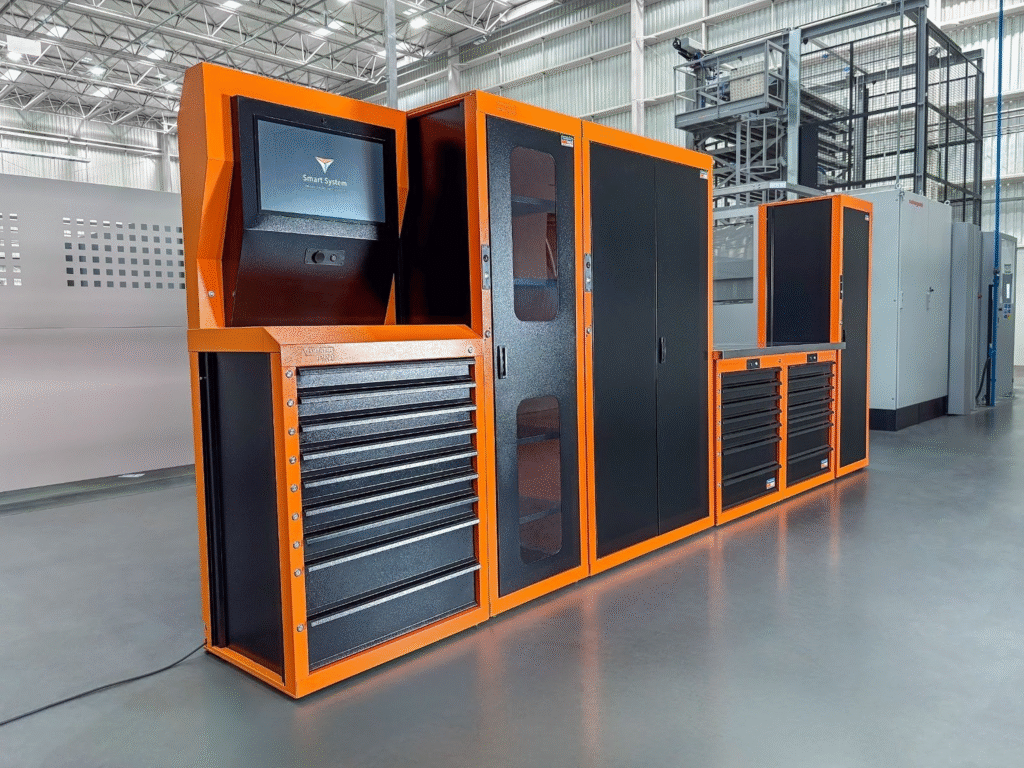 Um dos destaques recentes é o Carro Organizador Smart System, que incorpora inteligência artificial para identificar a retirada e devolução de ferramentas, com abertura automática de gavetas e mobilidade ideal para áreas críticas, como manutenção aeronáutica.