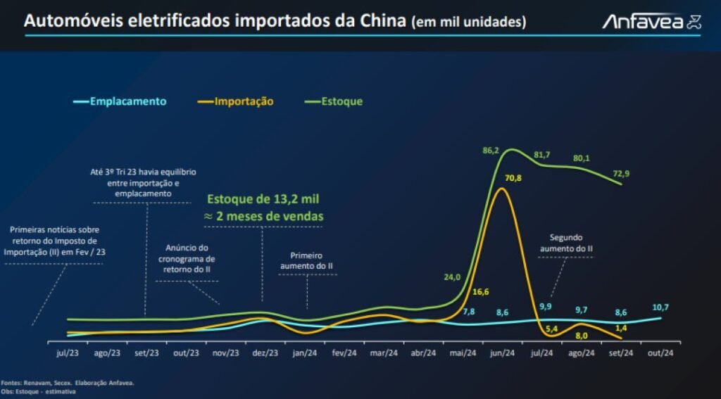 A crescente importação de veículos em 2024 segue como a maior preocupação de curto prazo da Anfavea. A entidade que reúne as montadoras com fábricas no Brasil, reclama, na verdade, dos veículos trazidos sobretudo da Ásia, já que os vindo dos países vizinhos de Mercosul são importados pelas próprias associadas e têm ainda parte dos componentes brasileiros.